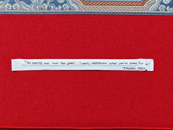 To, co dělalo toto setkání skutečně výjimečným, byla nejen produktivní komunikace, ale také srdečné gesto ze strany zákazníka. Po diskusi nám zákazník zanechal ručně psaný vzkaz – nečekaně napsaný na papírovém obalu brčka. Zpráva zněla: ' Tato schůzka byla více než skvělá! Opravdu si vážím toho, co jste pro nás udělali! Děkujeme.'